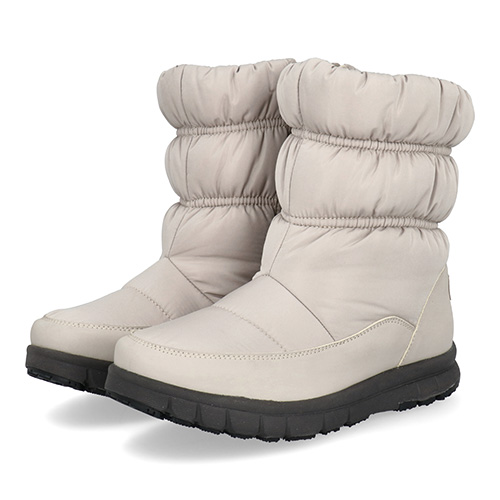 シンプルなワントーンの大人ナチュラルなカラーリングで仕上げたアッパーは、ダウンジャケットのようなスタイルで、2段にぎゅっと絞られたシルエットが絶妙です。