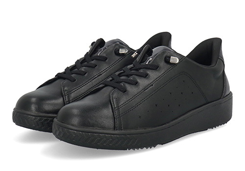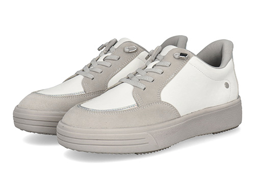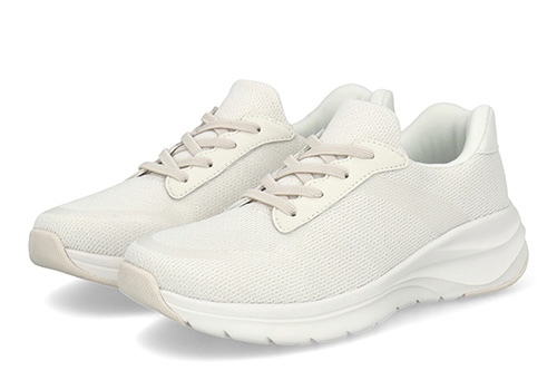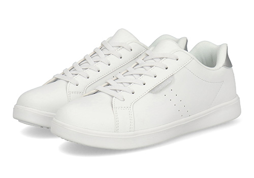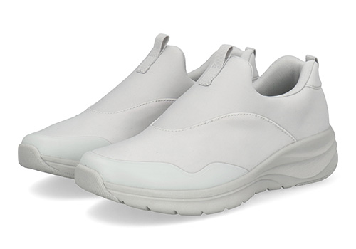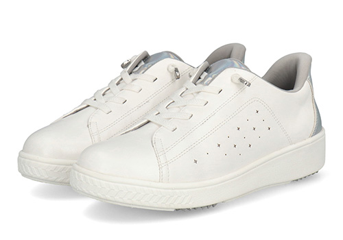 清楚で落ち着いた色合いとシンプルベーシックなスタイルで、何にでも合わせやすく日常使いできるコンフォートスニーカー。パンチングはさりげなく星型で、ほんのりとした可愛らしさも魅力。艶のあるアッパーが高級感を演出します。