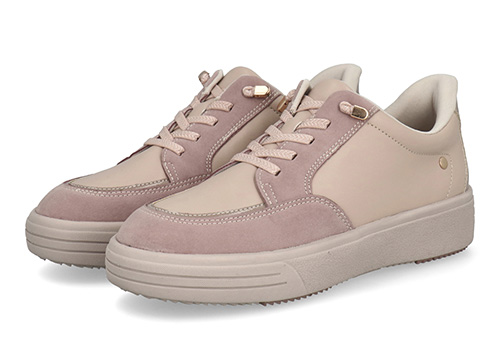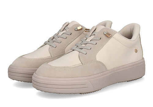 レトロクラシカルなスニーカーをベースに大人なくすみカラーでまとめられたコンフォートスニーカー。マットな質感に起毛の切り返し、キラリと差し込まれる金具のあしらいなど、こだわりが感じられるスタイルです。