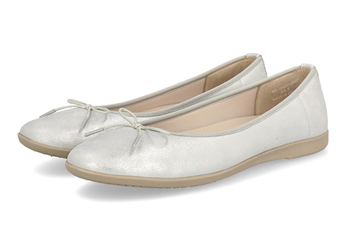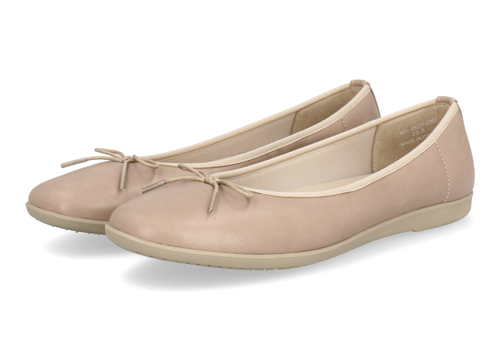 まるいトゥにリボンの愛らしさをワントーンのシンプルなカラーリングで大人にまとめたバレエパンプス。オンスタイルにも愛嬌をプラス。
