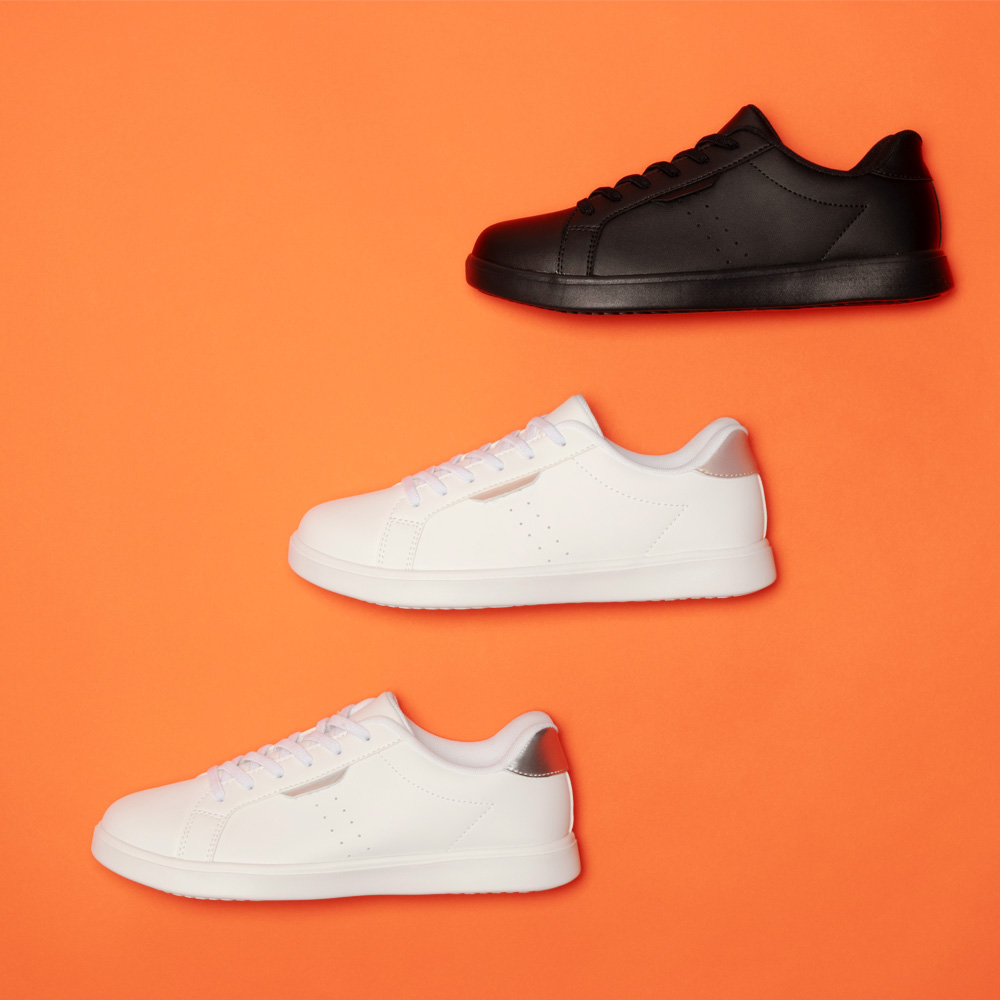 ワントーンにまとめたミニマルでシンプルなデザインはシーンを選びません。通学やオフィスにもおすすめの一足です。